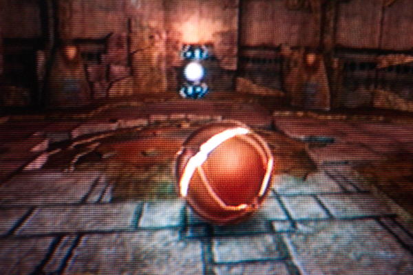 Samus in morph ball mode (sans spider ball) about to pick up the ice beam:
