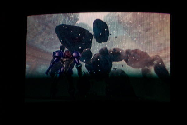 Samus in morph ball mode (sans spider ball) about to pick up the wavebuster: