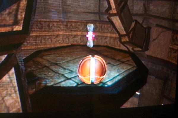 Samus in morph ball mode (sans spider ball) about to pick up the ice beam: